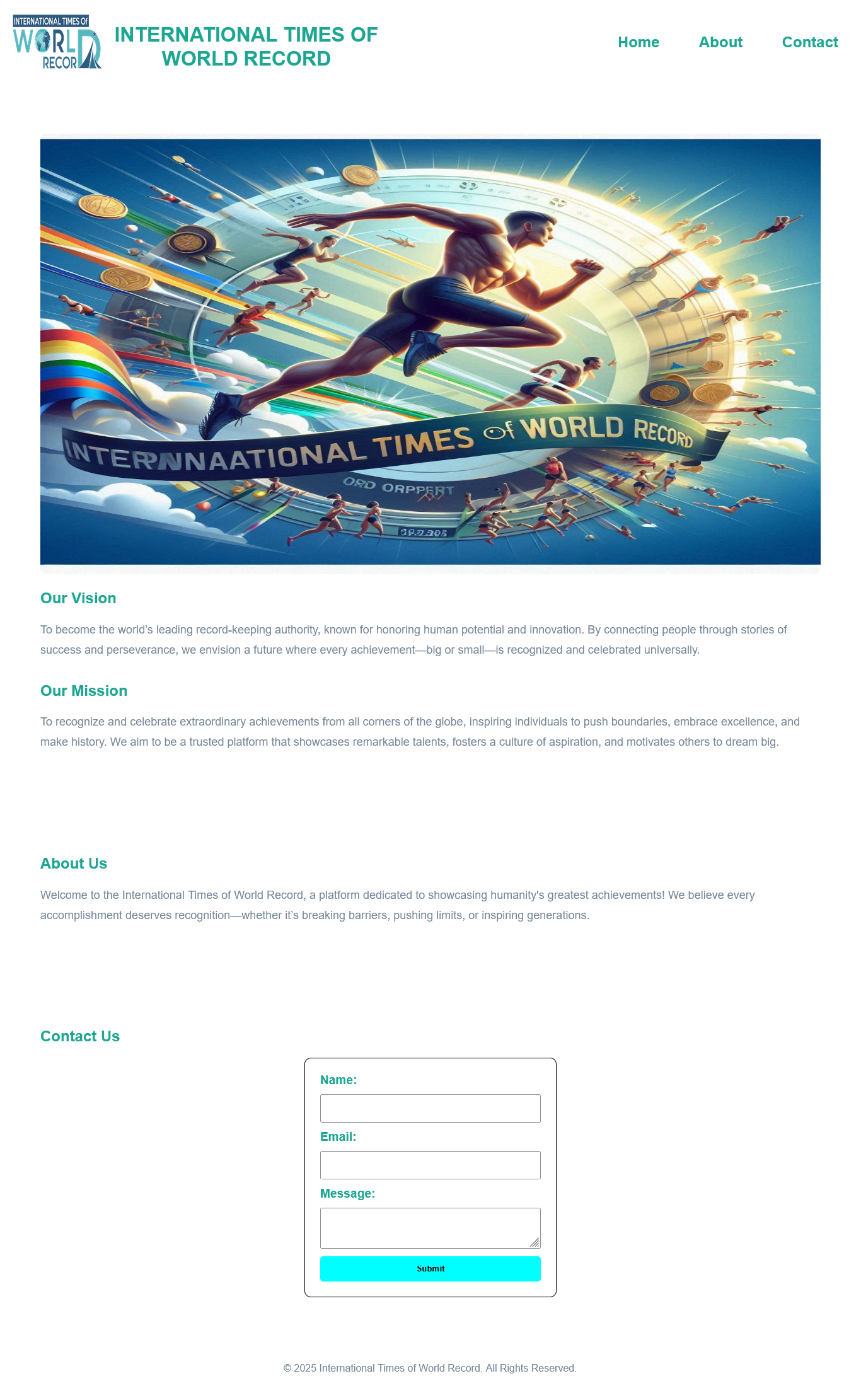 International Times of World Records is the world's largest online platform for recording and verifying human endeavors. We showcase incredible achievements from all over the world, inspiring others to strive for excellence.